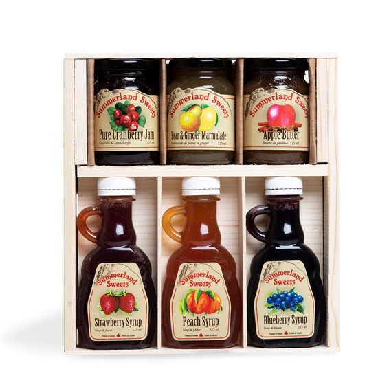 Another great way to introduce someone who is not familiar with our fruit specialty treats, this package is a great combination of our smallest sizes of both syrups and jams. We're pretty confident that once they try these - they will be ordering the bigger options as a pantry staple.